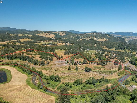 Once in a lifetime opportunity to live, own and operate your own working Christmas tree farm in the scenic Umpqua Valley. Nearly 25 acres of rich bottom ground and over 3,000 ft of Calapooia frontage with water rights. Breathtaking views overlooking the historic town of Oakland. Beautiful custom home upgraded throughout! Amazing outdoor kitchen patio with extensive water feature and mature landscaping. Super cute guest house for your farmhands. Large shop for the Tree operation & equipment.