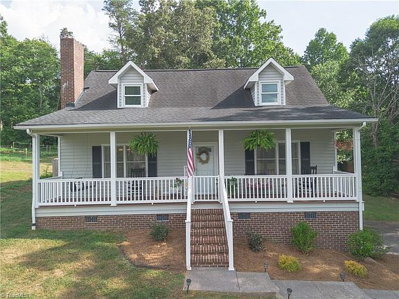 Beautiful Cape cod in great location! Minutes to King, Winston Salem but feels like you are in the country!! Very well maintained and lots updates! Rocking chair front porch, fenced yard, patio thats perfect for entertaining! Large Livingroom w/fireplace, open to kitchen/dining. Large Primary on main level. 2 large bedrooms on upper! Unfinished Basement, 2 car garage attached, 2 car garage in detached 25 x 26 workshop! New HVAC in 2022! Call today for more info!!
