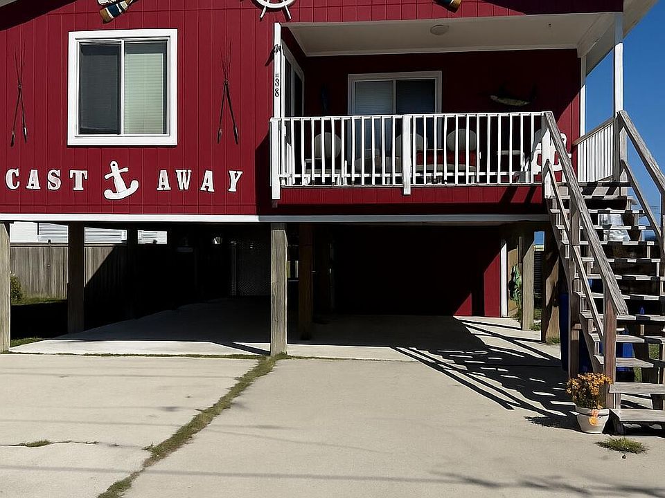 The property features ample covered space beneath the home, perfect for outdoor entertaining, relaxing after a day at the beach, or convenient storage for bikes, surfboards, and beach gear.