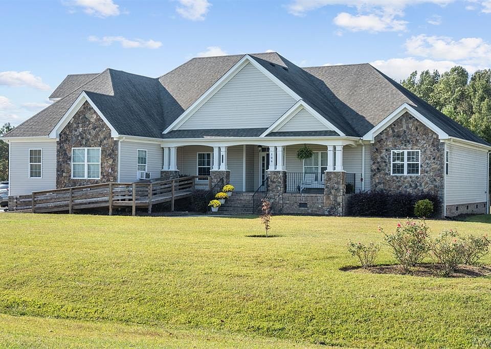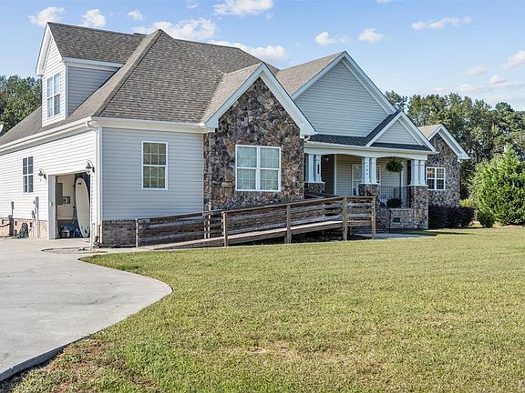 Stunning 4 bedroom+FROG, 3 bath Ranch home in Moyock w/2 car attached garage & new 1 car 18x26 detached metal bldg/garage as well as a new 12x28 shed, both w/pwr on a quiet cul de sac. Master features tiled shower, jetted tub, dbl vanities, 2 walkin closets. Kitchen has beautiful granite counters, SS appliances, hardwood flooring in living rm, dining rm, hall & tile floors in kitchen, laundry & bathrooms. Nice wide covered porch & large back deck for outdoor pleasure.This home is equipped w/handicap accessible ramp, bedroom & full bath.Wired for generator plug in. Home is on just under 1 acre.