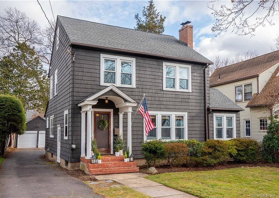 Charming 1920's 3-bed, 1.5 bath home in the heart of the walkable Morley neighborhood. This lovingly maintained home with hardwood floors throughout is drenched with natural light. The updated kitchen has white cabinets, new stainless appliances including a gas stove, new quartz countertops, and a butler's pantry providing ample storage. The adjacent dining room is perfect for entertaining guests and opens to the living room with wood burning fireplace. Off the living room you will find French doors that lead to a sunroom which can be used as a den, office or playroom. The second floor has a primary bedroom with three closets and access to a walk-up attic. Rounding out the second floor is a full bath, linen closet and two additional bedrooms, one which has an attached bonus room which could easily be used as an office, den, or playroom. The back deck off the kitchen leads to a screened-in porch, a private, level backyard with patio, and a detached two-car garage with an additional storage area. Recent upgrades include air conditioning, new hot water heater, new windows. This home has been updated and tastefully decorated with today's buyer in mind while still preserving many of the architectural features of a classic 1920's home. Don't miss out on the chance to live within walking distance to West Hartford Center, Blue Back Square and Elizabeth Park.