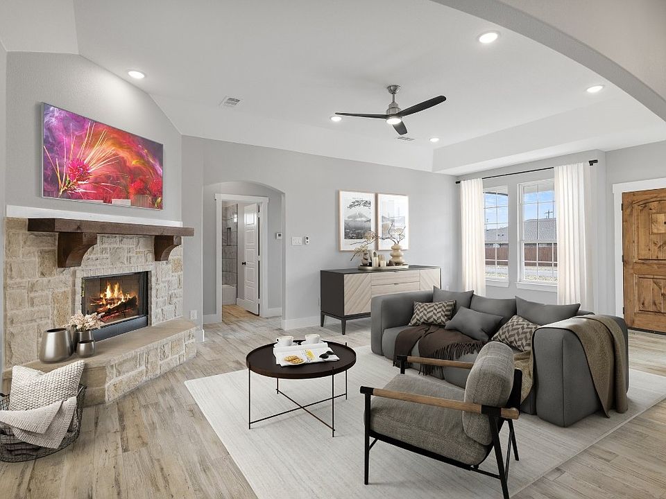 Welcome to this gorgeous oasis just outside the hustle and bustle of the city. As you step into this beautiful new home you'll notice the oversized eat in kitchen and the cozy living room where you can enjoy a nice fire in your wood burning fireplace. This home is located in the heart of Blueridge making it only minutes to McKinney. You have access to dining, shopping, and entertainment. Take notice of all of the modern touches that went into the meticulous design of the home. From the under cabinet lighting in the kitchen, the custom wood on the front door, vaulted ceilings in the common areas and the decorative lighting throughout the home. The primary bathroom includes dual sinks with plenty of storage space as well as a huge walk in shower for relaxation.