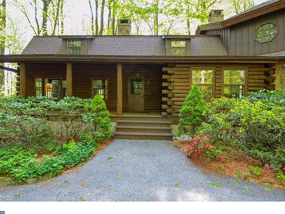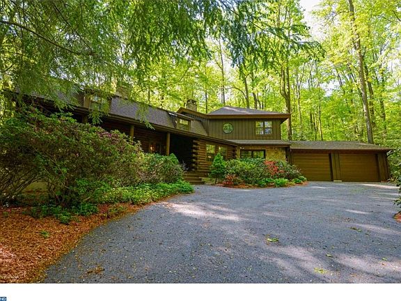 Fantastic log house with dramatic addition. Beautiful log interior, random width peg floors, beam ceilings and incredible 2 story post and beam addition. Large open areas include kitchen featuring oak cabinets, granite counter tops, 6 burner down draft cooktop, double oven, dishwasher and large center island, all open to breakfast nook and dining area. First floor family room features wood burning stove on stone platform. Two story addition of stone and imported log construction and concrete floor with copper inlay expansion system. There's also a covered hot tub pit. Log spiral staircase leads directly to large master bedroom including master bath with walk in closet and whirlpool. Finished basement area provides additional den/study room and exercise room. Of unparalleled appeal is the exterior and grounds of this home featuring multi-level deck areas, stone planter structures, front and back porch areas and walkway to a gazebo. Totally private and peaceful setting.