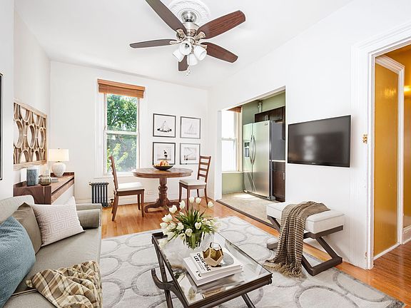 CHARMING 2-FAMILY TOWNHOUSE IN CLINTON HILL! This lovingly maintained turn-of-the-century wood frame townhouse with lush, 50-foot back garden is located in the historic Wallabout neighborhood, once home to Walt Whitman, which dates to the 17th century and today is part of Clinton Hill. Originally built as a single-family townhouse and currently configured as 2 units - an owners duplex (with basement) and top-floor income producing rental, 106 Hall Street retains its distinctive 19th century faade with fish scale wooden shingles as well as the original double entrance doors, wrought iron fence and wooden cornice. Entering beneath the stoop at the garden level is a full-sized formal dining room and the eat-in country kitchen that's been nicely updated over the years with subway tile backsplash and farmer's sink. Enjoy cooking while keeping an eye on the activity in the incredible 50-foot garden that is constantly in bloom. There is ample room for a garden as well as relaxing, grilling, and enjoying the outdoor space that is so hard to come by in NYC. One flight up inside the main parlor entrance at the top of the stoop is the sunny formal living room with the original French doors, which lead to the bedroom. The current layout could easily be converted to accommodate 2-bedrooms. There is a windowed, full bathroom en-suite to the bedroom. With a recently renovated kitchen and bathroom, the top floor, 1-bedroom apartment enjoys both prewar charm and modern comforts with a sleek new kitchen featuring stainless steel appliances, stone countertops and dark wood cabinetry, as well as a gorgeous marble tiled bathroom with skylight, Kohler toilet and original clawfoot tub newly reglazed. The sunny bedroom is the original primary bedroom from when the house had been a single family layout and showcases a lovely arched alcove, exposed brick, and beautiful sunlight from the three tall windows. 106 Hall Street is a sweet jewel box just waiting to be owned and customized for its new owner. Keep it as a 2-family home with a great source of additional income or convert it back to a single family layout for 3-bedrooms on 3 floors plus a full basement. There is also additional FAR available of over 500sqft if you wish to add an addition to the house for increased space and value. Don't miss out on owning this special slice of Brooklyn paradise!