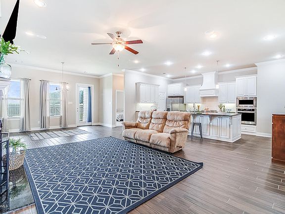 This home was custom built and designed. The floorplan is fantastic. This is not your average split floor plan, it's a tri-split!! You have to see in person to appreciate. And the photos just don't do the main living area justice! On the outside you will love the classic American curb appeal with four gas lanterns that accent the homes style, day and night. On the inside, you will love the open floor plan that was built for entertaining. It has great site lines throughout the entire living space so you can see everything going on with your family and friends. The living space flows easily to the back patio that has custom lighting and open space. Other features include double french doors, brick archways and accents, slab granite throughout, dual vanities & beautiful molding You will be charmed from the moment you walk up to the inviting front porch with large cypress beams and flickering gas lantern. The dining room entry ways are open to the kitchen and foyer and will have exposed cypress beam headers. The kitchen features stainless steel appliances including gas cooktop, single wall oven and built in microwave, 3 cm White G granite, 3x6 glass tile back splash and pendant lighting over the large kitchen island/breakfast bar that over looks the living room. Living room features a gas fireplace with custom built ins and granite surround. Master suite has a spa like bath with separate soaking tub and job built shower, dual vanities and large walk in closet. Professionally landscaped and sodded front yard.