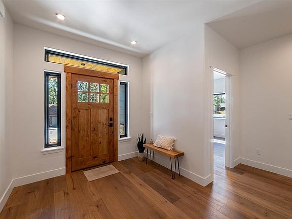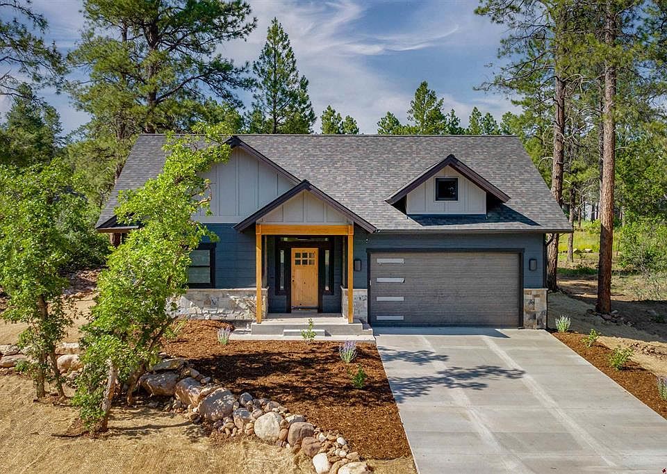 Welcome to this stunning mountain modern home located in the highly sought-after Edgemont Meadows. As you approach the property, you are greeted by a charming covered T&G front porch and a solid Alder front door that sets the tone for what's to come. Step inside and experience the spacious and inviting open floor plan that is perfect for entertaining. Upgrades include: 14ft Vaulted ceilings with solid douglas fir beam (main living, primary suite, bathroom and closet), black dual pane Anderson windows, solid alder interior doors with black Schlage hardware, engineered hardwood floor, custom solid wood kitchen cabinets with Dekton countertops and under cabinet lighting, 36 in stainless steel range with a custom vent hood and all stainless-steel KitchenAid appliances, dual vanities in both bathrooms, walk-in master shower with tile surround and glass door, barn door to master bath, access to back porch from master, 42in gas fireplace in living room, back deck with T&G that is hot tub ready, side entrance to the oversized two car garage with EV charger, insulated Clopay garage door, recirculator for the hot water heater for instant hot water, and central air conditioning. The attention to detail not only inside, but also outside with metal charcoal gray wainscoting on the sides and back of the home. Hyde park stone wainscot on the front, exterior LP siding with a 12in reveal, total of 8 foot privacy panels in back yard. Don't miss this opportunity to own a truly exceptional property in Edgemont Meadows. This home has everything you need and more to create a comfortable, luxurious, and stylish home.