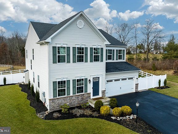 Showings start Saturday January 7th at the OPEN HOUSE 12-3pm. Welcome home to this beautifully maintained 4 BR 2.5 bath Colonial located on a cul de sac in the Boyertown Area School District. Located on a premier lot in Hanover Pointe, enjoy the largest yard in the neighborhood with privacy and wooded views, access to the community walking trails and playground, and more. Enter the front door to find custom molding in the foyer, built-in bookshelves in the living room adjoining the dining room, and a spacious powder room. Moving to the rear of the home, the open concept living space is perfect for everyday living and entertaining. You'll find a gourmet kitchen with double wall oven and cooktop, a 13' island with space for 6 stools, extensive cabinetry and counter space, a custom marble backsplash, and a large walk-in pantry. Flowing from this space you'll find the large family room with gas fireplace and custom marble surround and the generous sunroom with ample natural light. Don't miss the mudroom off of the garage for added convenience. The upper level offers a large loft area, 4 bedrooms, 2 full baths and a convenient laundry room. The primary bedroom includes two large walk-in closets and en suite bathroom including a roman shower. Lower level has ample storage space, 3 piece rough in, and egress window and can easily be finished. Enjoy the fenced in backyard with a wooded view, including a large composite deck (2018) and an electric fence. Close to shopping, restaurants, parks and walking trails. Owner is a Pennsylvania Real Estate Agent.
