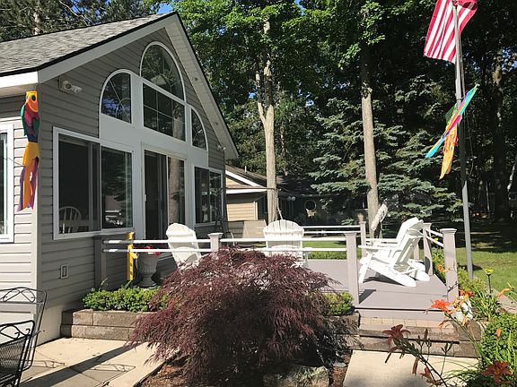 OUTSTANDING HOME FOR SALE Pristine 175' of sandy beach front, to a beautifully landscaped yard is the beginning of what you will find in this meticulous year-round home. This outstanding Waterfront association home located in the desired Daytona-on-the-Lake Association has the lake directly in front of you. Upon entry you will find the vaulted and 9' ceilings with open concept living space inviting, along with the panoramic views that include a premium kitchen, upgraded granite, stainless steel appliances and hardwood laminate flooring. This home has 2014 renovations, new windows w/radius transom above on the lake side windows, Wellington premium cabinetry w/roll out drawers, large pantry, six panel solid core doors, main floor laundry with ample storage space, 2 bedrooms, ceiling fans, Delta fixtures, an inviting full bath with a tiled walk-in shower with premium Corian counter, also a half-bath. Water baseboard heating system, att. garage w/10' ceiling, composite deck, patio, sprinkler system, and so many extra amenities for you to view and enjoy. The gas log fireplace can be enjoyed with a cozy view in both dining and living areas. You will find many rooms has the beauty and lake views to enjoy all seasons. This south shore location is a well desired location on Higgins Lake. You will enjoy walking on the dock with guaranteed boat mooring! New beach project coming this fall. Ready to go, just move in to this year-round home. Current property taxes $3200, Association dues $75 Send a text or call to discuss your possibilities. 248 379 7615