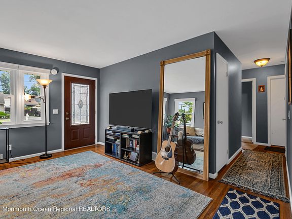 Hamilton Gardens Eco-Ranch | This charming home features an oversized master bedroom and a greenhouse inspired bathroom with sky light, a walk-in shower, and a luxurious soaking tub. The eat-in kitchen seamlessly connects to a cozy family room with a fireplace. Sliding glass doors that lead to a patio and private backyard. Modern Tech amenities include solar panels, Tesla Powerwall 2.0 and an electric vehicle charging outlet located next to large driveway. The basement includes a full bathroom with room for storage. Enjoy the convenience of a prime location near major roads, beautiful beaches, and Shark River Park for endless recreational opportunities.