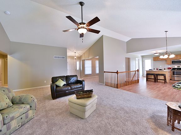 esting upon a large level lot, everyone will adore this wonderful 3 bed/2 bath brick-front ranch from the moment you pull up! The formal entry foyer welcomes you home & into the open fl plan where cathedral ceiling rises above the large great rm. A charming brick-surround fireplace keeps everyone toasty warm on chilly nights. Entertain in style with the large formal dining rm. Spacious kitchen offers a center island with breakfast bar, brand new stainless appliances & an atrium walk-out to the covered side patio. Adjacent breakfast room features a tall vaulted ceiling & sliding glass doors to the back patio. Convenience of a main fl laundry. The generously sized main fl master suite features another cathedral ceiling along with a walk-in closet & private full bath with double vanity, garden tub & walk-in shower. Home features brand new flooring & fresh paint. The lower level includes a rough-in bath & is ideal for finishing. Oversized 2-car garage too! You will love this home!