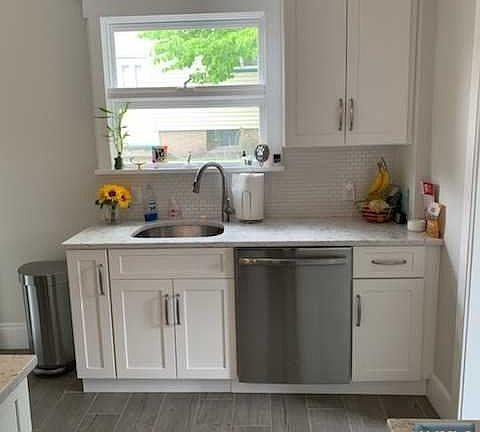 Totally redone side hall colonial. An entrance foyer greats you as you walk in with a large closet. The living room is open to the sunroom with wood floors. The open concept dining and kitchen area is so welcoming and bright with its white cabinets,granite counters, and ss appliances. There is a mud room that takes you to a newer deck, and pavered patio area. The driveway can accommodate several cars, and the garage has been finished with heat,speakers,cable and much more. The second floor has three bedrooms and a full bath. The property has nice landscaping , and is steps away from the NYC bus line and shopping.