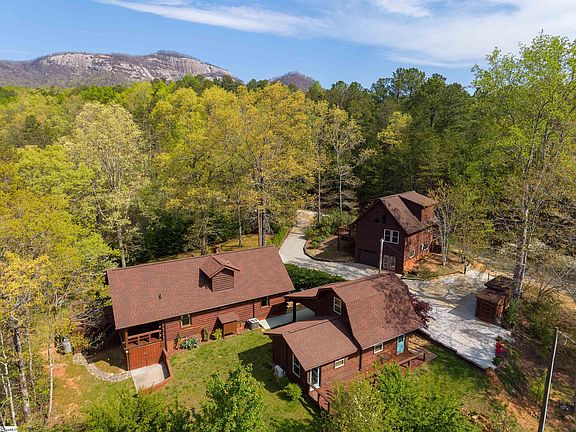 Welcome to 106 Hiawatha Trail, a versatile mountain retreat located less than half a mile from Table Rock State Park. Nestled on a corner lot of nearly one acre, this property offers THREE separate living spaces, perfect for private living, short-term rentals, or multi-generational use. The primary two-story log cabin features 3 bedrooms and 2 bathrooms, exuding warmth with a wraparound deck, wood-burning fireplace, smooth ceilings, and an open floor plan. In addition, a newly custom-built 1-bedroom, 1-bathroom guest cottage offers modern amenities and unique details, including custom pecan wood accents and a spacious second-level bedroom. The property also includes a two-story detached garage with cedar siding, featuring a partially finished loft with tongue-and-groove pine floors and a large deck, providing the perfect opportunity to create an additional living space or studio. Surrounded by fruit trees and mountains, this property combines natural beauty with modern updates, including new roofs on all structures, a shared well, and energy-efficient HVAC systems. Conveniently located near Lake Jocassee and Lake Keowee, and with no restrictions, this property offers endless potential for investment, relaxation, or outdoor adventure. Don’t miss your chance to own this mountain haven—schedule your private tour today!