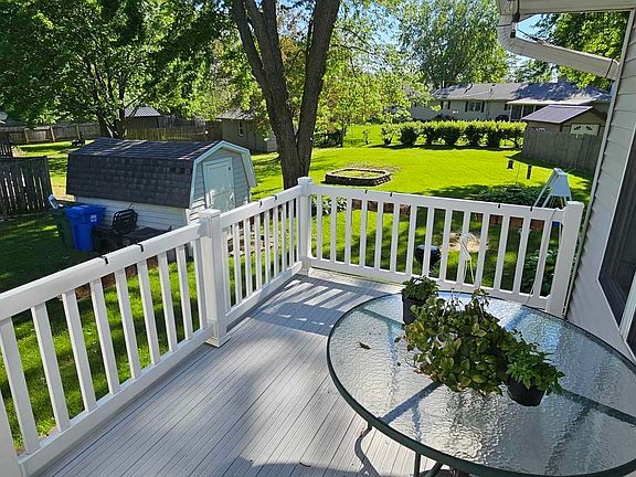 Beautiful 3 bedroom home located near middle and high school. Split level homes features large living room, updated kitchen with new back splash, formal dining room, and large 4 season room surrounded by windows and gas fireplace. 3 bedrooms and updated full bathroom complete the main floor. All new laminate flooring and fresh paint on the main level freshens the living space. Lower level is a walk out full basement with large brick fireplace, new bay window in the oversized family room, additional bedroom or gym, and laundry room with half bath. Composite rear deck, storage shed and beautiful backyard with lots of room for garden and play complete this amazing property.
