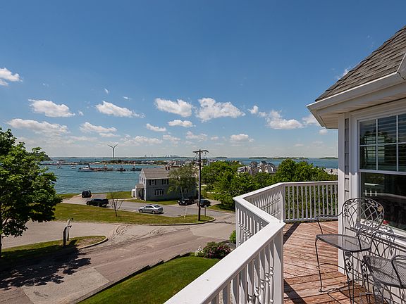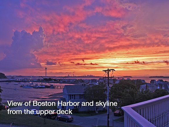 Sweeping water views of the Ocean and Boston Skyline abound from this beautiful designer home. Coastal living at it's best, sunny and bright with an open floor plan. A custom stone fireplace showcases an inviting family room that opens to the dining room & kitchen. A slider leads to an expansive mahogany deck with a lovely landscaped backyard for entertaining. Chef's kitchen with stainless steel appliances, granite & recessed lighting. Many windows, decks and a balcony to enjoy the inspiring views and calm sea breezes. Master suite with water views from every angle, newly remodeled full bath, walk in closet and sitting area will make you never want to leave. Third floor suite in addition to two other generous sized bedrooms. Outdoor mahogany shower for returning from a day at the beach. Two car garage, hardwoods,sprinkler system and exercise room complete this high end home. Walk to the commuter boat for an effortless, enjoyable commute to Boston
