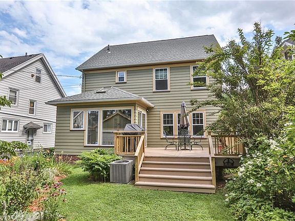 Gorgeous Craftsman-period home in desirable Highland Park neighborhood. This lovingly maintained home features beautiful gum wood throughout, pocket doors, French doors, leaded glass doors, a sun-room, and a large modern, cherry and granite kitchen. The finished third floor features large windows and a stunning acacia floor. Windows throughout are fitted with custom blinds and shades. The two-car garage is a rare find in this historic neighborhood, and the flower garden's year-round beauty can be enjoyed from the large, bright kitchen or the private deck. Greenlight fiber optic internet is available, and the home is within UofR's Home ownership Incentive Program, which provides up to $9K towards the mortgage for university and Strong employees!