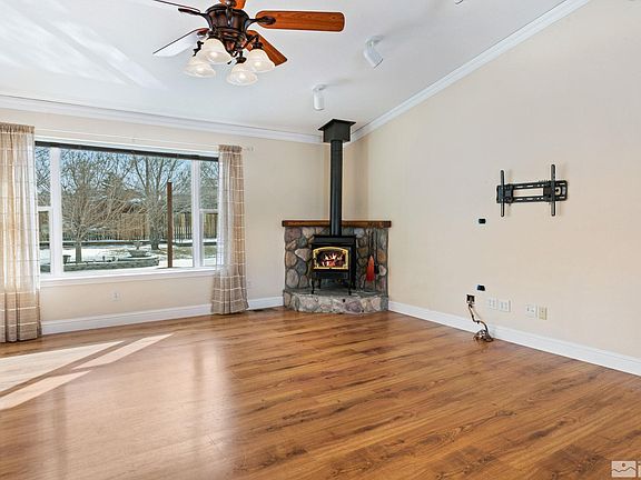 Dream come true! Located on 1/2 acre in Hillcrest! RV Garage is 532 sf (38 feet by 14 feet) - finished & insulated+ the 624 sf attached garage! Power & sewer hookups in back. The interior of the home has 4 bedrooms & 3 full baths. The large great room has a freestanding gas fireplace & is open to the spacious dining area & kitchen. The spectacular kitchen has tons of cabinets, granite countertops, large island + huge breakfast nook. The main master bedroom is on the floor w/a large vanity, walk in