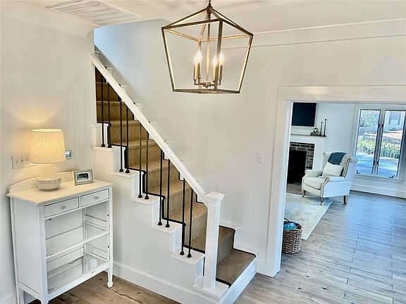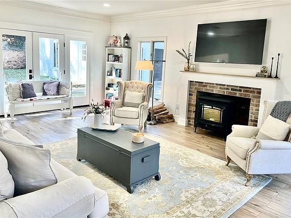 Welcome to this completely remodeled & elegant house with an open & peaceful atmosphere. Views of mature trees & the neighborhood stocked pond are visible at every turn through the numerous windows; open the 2 sets of French doors to extend living spaces outdoors. Entertain & cook in the custom kitchen featuring floor-to-ceiling white tile, quartz countertops & upscale fixtures & appliances. Host group gatherings downstairs while the 3 bedrooms & 2 full baths upstairs remain quiet & private. Maintain the elegant tile & wood floors with ease & enjoy relaxing features like a freestanding tub, custom shower & on-demand hot water. An abundance of built-ins make storage subtle & sleek lines easy to achieve. Welcome to living in minimalistic serenity on Hilltop! Schedule your tour today! House has been completely remodeled: new custom kitchen, new bathrooms, new roof 2021 (roof does have a pitch & is NOT flat), exterior painted 2021, new doors downstairs 2021, new tile downstairs, new hardwood flooring upstairs, new garage doors 2022, large garage (fits large SUV & truck), separate shed remains with property, recently asphalted driveway and circle drive. Notable features: Andersen windows, on demand hot water, custom built-ins, wood floors, plantation shutters, designer fixtures, smart thermostat, security & camera system, large double garage, separate shed & numerous parking spaces.