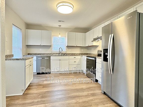 Welcome to this completely rehabbed adorable home. This home has 3 beds, 2 baths and over 1450 sq ft of living space. Step inside to find the spacious welcoming living room with all new flooring, that opens up to the dining room and kitchen. Kitchen has plenty of cabinet and counter space, both of which are new, and new stainless steel appliances as well. Two bedrooms are on the first level along with 1 bathroom, and the other bedroom is located upstairs and has a full bath as well. New flooring throughout. Great front porch. Large yard with additional storage building and deck off of the kitchen. Dogs only. Washer/dryer included. This home is available now. HOA documentation can be provided as requested, if applicable. Please visit our direct website to schedule a viewing and to review our tenant qualifications. Please note, we do not accept 3rd party applications. Minimum 1 year lease agreement is required.