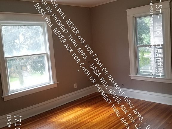 Newly refinished large 3 bedroom with closets, covered porch, and backyard. Features. 1 and 1/2 bath with linen cabinet, eat in kitchen (gas range ready), and living and dining rooms. Beautifully restored hardwood floors throughout. Storage in basement (H/C water, electric washer/dryer ready). Centrally located nearby shopping, entertainment and grocery stores. Water is included.