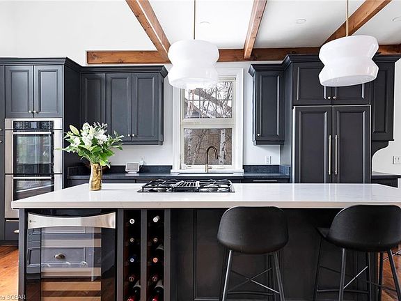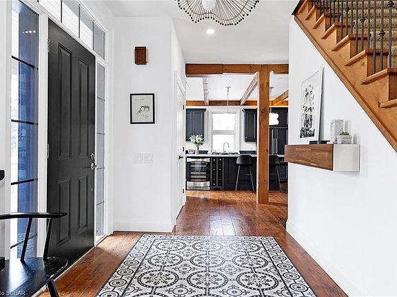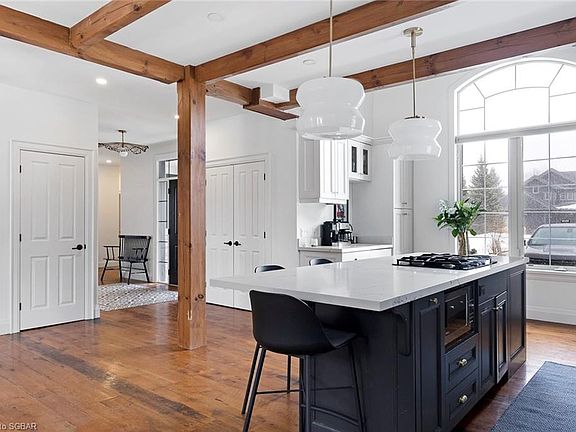 This beautiful custom 5 bedroom home is located at the end of a cul-de-sac with direct access to the Georgian Trail. Situated in the prestigious Lora Bay community the home has over 4000 sqft of living and entertaining space. Featuring a light filled main floor with many large windows, soaring ceilings, hemlock wide-plank hardwood floors and contemporary designer lighting. The updated chefs kitchen is complete with Caesarstone counters, large centre island, coffee station, and built in appliances. The Great Room, with a stone surround grand gas fireplace has multiple walkouts to the large and private landscaped backyard and hot tub. The spacious primary bedroom with 5-piece ensuite, private den/office, Muskoka room, powder room and laundry/mudroom complete the main floor. Upstairs offers two large guest bedrooms and an updated 4-piece bathroom. Head downstairs to the fully finished lower level with 9ft ceilings and features a Rec Room complete with floor to ceiling theatre & surround sound, yoga studio & gym, 2 additional bedrooms, a 3-piece bathroom and all the storage you need! 2 car attached garage can be accessed via the main floor as well as the basement. Whether your pleasure is golf, skiing, walking trails, private beaches, award winning restaurants or simply a slower pace, Thornbury and Lora Bay have it all.