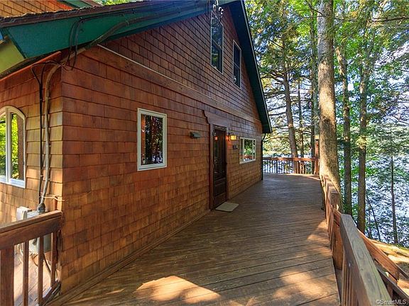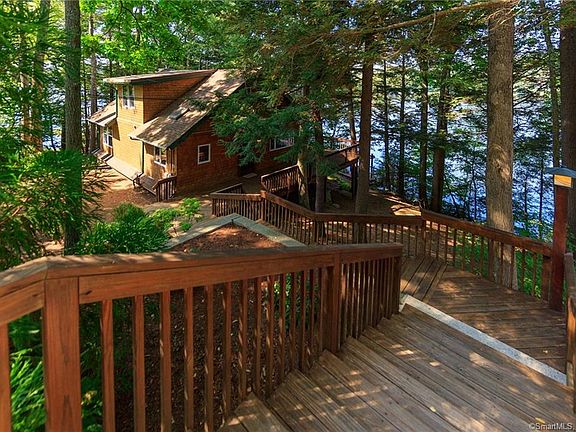 Extraordinary opportunity to create your own retreat in this tranquil setting on Witches Woods Lake. Direct 120 feet of waterfront cedar sided home where you can enjoy westerly lake views and enjoy all the seasons. This exceptional, open-floor-plan design maximizes recreational and entertainment space, while the expansive deck and outdoor amenities provide a beautiful vista of peaceful waters below. Pristine tiger eye maple floors, handmade wooden stairs and railing leading to the second floor, and sensational unobstructed lake views are just a few reasons to adore and feel right at home in the dining and living room combination. A delightful custom hickory cabinet kitchen with tile flooring, skylight, recessed lighting and crown molding greets you to the left as you enter. The well thought-out and planned custom engineered stairs leading to the dock and water a, tiered landscaping design, mahogany pergola, gazebo and field stone patio /terrace with private sitting area are sure to leave a lasting impression. The spectacular post and beam country barn combined garage with its lighted cupola on top is the perfect place for winter or summer fun, sports nights or gatherings, cozy 500 sq ft game room with woodstove, stereo, cable hookup, transom windows, pine wood flooring and extra driveway. A lovely home with a wealth of amenities, don't wait to make your appointment before it's gone