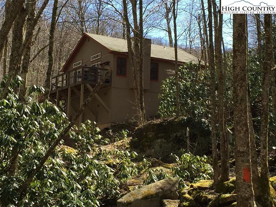 CUTE AND COZY CHALET DIRECTLY ON POND CREEK AND POND CREEK TRAIL. Cuddle up in front of the beautiful wood burning fireplace. Home has be charmingly decorated and being sold furnished with just a few exceptions. Relax while you listen to Pond Creek, it runs just in front of the property. Very private location - this home is the last house on Indian Trail. Open the curtains and feel like you are perched in a tree house. All this coupled with Beech Mountains cool temps makes this home a dream come true.