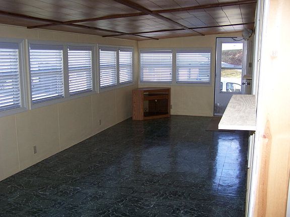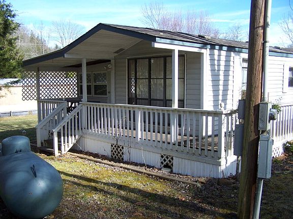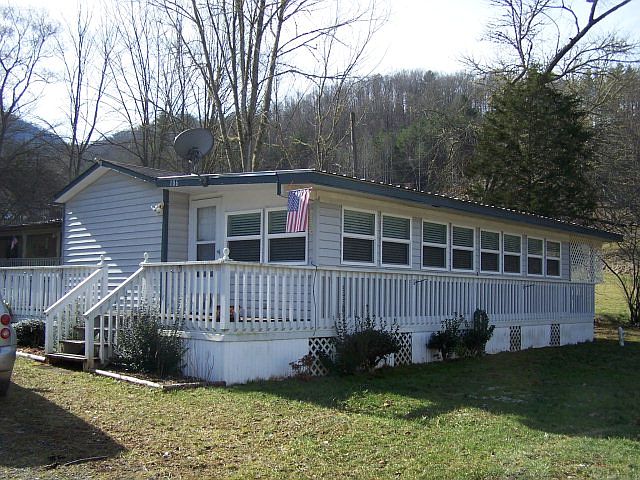 55 and older retirement park half way between Franklin and Dillsboro. $250 per month lot rent, includes water, septic and year round yard maintenance. 1987 Park Model, in excellent condition with 9.9x32.8 addition, which is currently used as the living room, wrap around porch that goes from the front all the way around to the back with a nice covered back porch with picnic area and nice view of the stream that runs along the backside of home. Home has been updated with a new kitchen in 2010, new vinyl floor tiles throughout, new ceiling, new insulation, new paint, the bath has been redone with new shower. The living room addition has new drop in windows, custom made plantation blinds and just very open and spacious. New metal roof was put on in 2014 and owners added 15 gallons of sealer as preventative maintenance to prevent leaks. Home has an AM/FM radio system with cassette that plays throughout home. 18,500 BTU combo heat and air window unit as well as gas furnace. Nice creek view from the back porch. Home is partially furnished.