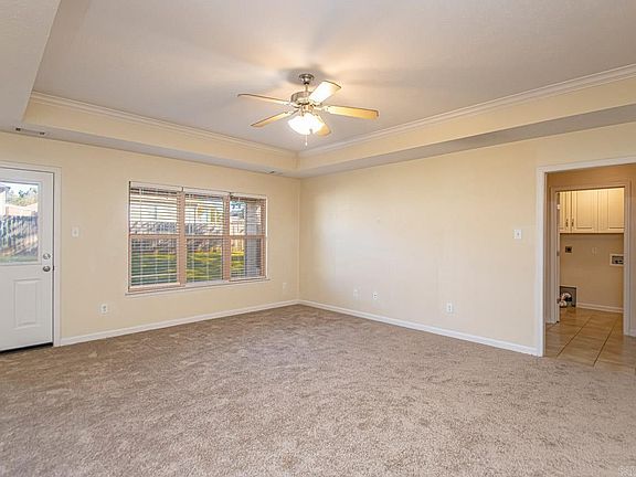 Welcome home! Beautiful 3 bed 2 bath brick home with a 2 car garage. Large living room with tray ceiling. Kitchen has beautiful cabinets and updated appliances. Dining area large enough for a dining table. Large master bedroom with tray ceiling, walk in closet, jack and jill style sink, jetted tub, and shower. Two large guest bedrooms with a shared bathroom. Laundry room. Large fenced in backyard with a covered back patio. This home is move in ready, schedule your showing today!