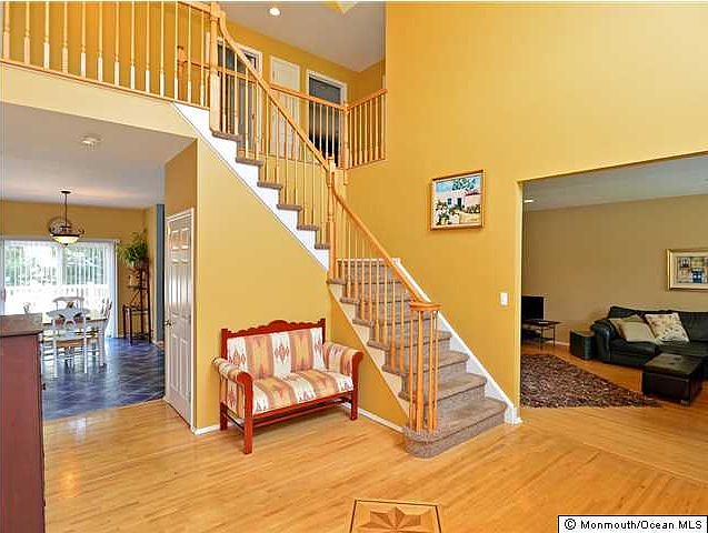 Beautiful Elite model in desirable "North Brook Manor' of Marlboro. Great curb appeal w/paver walkway. Two story foyer, 5 bedrooms 3 1/2 Baths w/full bath on the 1st fl. Gourmet kitchen features 42" cabinets, CI, ceramic tile & slider leading to a large trex deck overlooking a private fenced backyard. F/R features wood burning F/P. Full finished basement w/office/bedroom, gym, playroom & bath. Generous Room Sizes, 9' ceilings on the 1st fl. Close to shopping & NYC transportation.