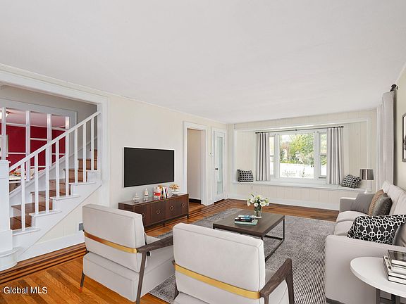 Charming and bright 3-bed, 2-bath Colonial on a great Cobleskill Village lot. This perfect starter home features a spacious living room and formal dining room with large bay windows offering an abundance of natural light, quaint country kitchen, all bedrooms on second floor including primary bedroom with ensuite bath and hardwood floors throughout; an attached 1-car garage and shed for additional storage. Enjoy a quiet morning on your front porch and long summer nights on your back deck with a pergola overlooking a neatly landscaped spacious backyard. Home is within walking distance to village shops, eateries and schools. Less than an hour to Albany and Oneonta. Welcome Home!