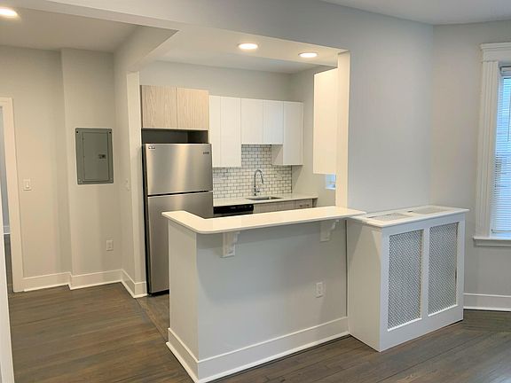 AVAILABLE JUNE 1ST! Heat and hot water included. BRAND NEW renovation (2021). White quartz counters and stainless steel appliances. Washer and dryer in unit. Heated bathroom floors. Completely new bathroom renovation with walk-in glass shower. New walls, lighting, flooring. Wonderful flow and natural light. MUST SEE!