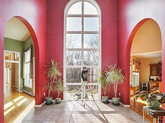 Beautiful & inviting 4 bed, 3 bath Contemporary sited on 4 acres of privacy. Great layout featuring granite kitchen with custom island that easily seats 6. Spacious living room, bathed in natural light, features wood burning air circulating fireplace for cozy winter nights. Ideal space for entertaining and family fun. 1st floor master en-suite features custom WI closet, bathroom with double sinks, soaking tub, shower and block glass windows. 2nd bedroom with sitting room on 1st floor serves well as guest room or teen suite with easy access to full bathroom. Second floor has 2 good size bedrooms, full bath and home office/homeschooling area with custom built ins. Backyard oasis is great for summer parties with amazing patio, fire pit, hot tub, pergola and deck. Fenced garden area with raised beds ready for spring planting. New roof, propane heating system,and new driveway that accommodates 10+ cars. New vinyl siding is being installed.