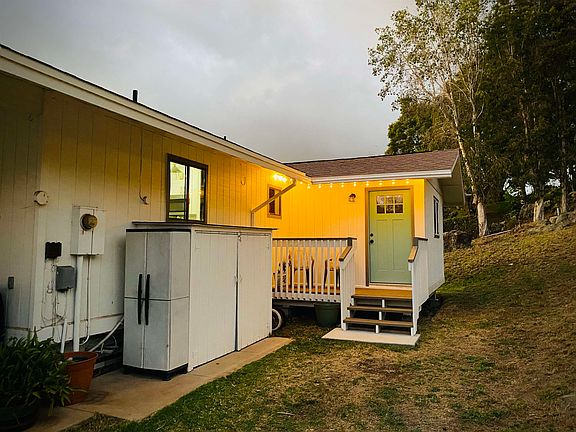 “Priced To Sell" This wonderful 2 bedroom, 1 bath, plus den is located on a peaceful cul-de-sac. Enjoy the ocean and mountain views, cool weather, and relaxing home. This home has the WOW FACTOR and displays complete pride of ownership. The home includes new kitchen cabinets, quartz countertop, cracked glass tile backsplash and an island in the kitchen with a butcher block top for easy cooking and dining. The house has newer appliances and house upgrades that include interior paint, ceiling fans, new flooring and baseboards, bathroom vanity and toilet, new roof and gutters, exterior paint, epoxy coating in carport for easy cleaning, extra-large lanai for visiting, as well as a water catchment barrel for gardening and new exterior doors. The comfortable and relaxing atmosphere of this home will make anyone able to move in with ease! This is a CPR property. With 6,643 sf of land with room to garden or to sit and enjoy the wonderful views. Call today to schedule a showing of this charming home!"