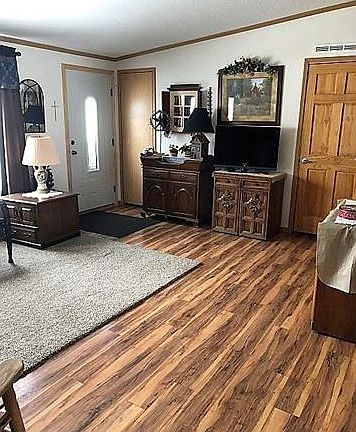 Total Renovation...this spacious 4 bedroom, 2 full baths beauty is move in ready. Modern kitchen w/newer appliances. Dining room w/sliding french doors lead out to huge patio. Nice size Family Room for entertaining. Brand new flooring throughout. Master Bedroom suite w/new bathroom vanity. New Central Air with Heat Pump and new hot water heater. This home offers open concept living. Nice private backyard, and a brand new utility shed w/loft for extra storage. Located in Northside Heights,amenities include community pool, basketball court, playground and activities. Lot rent of 400 a month includes water, garbage and sewer.