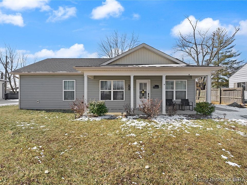 Nearly New & Move In Ready! Welcome to 106 Kenwood Avenue, Charlestown, IN 47111—a beautifully maintained 3-bedroom, 2-bathroom home built in 2021. With 1,118 sq. ft. of thoughtfully designed living space, this home offers a perfect blend of modern convenience and cozy comfort. The kitchen is well-appointed with modern appliances, ample cabinet space, and a functional layout, making meal prep a breeze. The primary suite offers a peaceful retreat with an en-suite bathroom and walk-in closet, while the additional bedrooms provide flexibility for guests, a home office, or more. Enjoy outdoor living with a covered front porch and a back patio, ideal for entertaining or relaxing in the evening. This home provides easy access to local shopping, dining, parks, and major roadways. Additional features include: Energy-efficient Thermopane windows, Central air & heat pump for year-round comfort, Off-street parking, Public water & sewer services. Sellers are offering a $2,000 flooring allowance as a credit at closing to the purchaser(s) with a desirable offer. Don't miss this opportunity! This home qualifies for 100% financing with USDA and VA loans for eligible buyers. Schedule your private showing today!