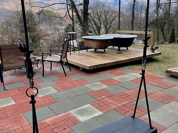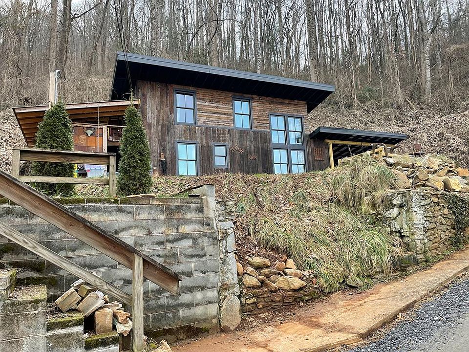 This is the one you've been waiting for! VIEWS FOR DAYS AND WALK TO DOWNTOWN SYLVA!! This custom built cabin has it all! 2 bedrooms and 1 bath with vaulted ceilings and tons of repurposed wood from the original 1940's Craftsman home. Full kitchen with gas cooking, tankless hot water and custom butcher block countertops. Lower level features a full bedroom with washer and dryer, hang out style sitting area and breakfast nook. The loft includes a cozy living area with cat-walk to a computer niche and another full bedroom. Amazing views of downtown Sylva and the surrounding mountains from every window. The outside living area features a custom covered patio, a deck with two claw foot tubs (yes hot water is there to keep them toasty), custom wood walkway to a storage area and if that's enough an outdoor shower in the rear. The west side of this property is Nekkid private. It just doesn't get any better than this. All quality, all custom. Vacasa projected rent available.