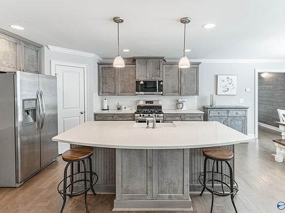 - Features: Crown Molding, Granite Counters, Kitchen Island, Pantry, Recessed Lighting, Smooth Ceiling, Wood Floor