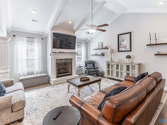 - Features: Ceiling Fan(s), Crown Molding, Fireplace, Recessed Lighting, Vaulted Ceiling(s), Window Cov, Wood Floor