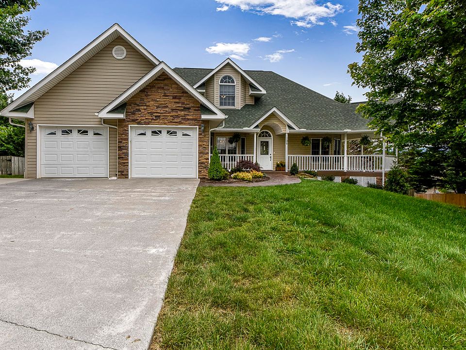 Beautiful home sitting on quiet culdesac inside City of Maryville with full unfinished basement. Knockout mountain views off the covered wrap around porch! Large fenced back yard. Spacious living area with vaulted ceilings & gorgeous hardwood flooring. Kitchen updated with brand new tile floors, granite counter tops, hardware, & light fixtures. Formal dining room, separate laundry, office & breakfast area. Over sized master suite with fireplace includes updated bathroom w/ dual vanity, whirlpool tub, and walk-in closet. FULL unfinished basement needs minimal work to complete and offers a potential of additional 1868 sq ft!