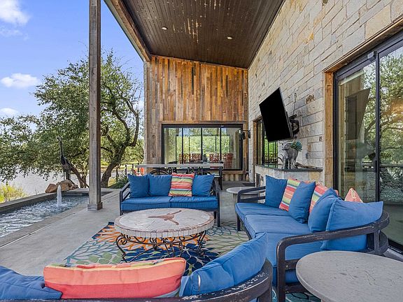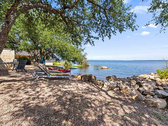192 feet of prime Lake Buchanan shoreline, shaded by mature trees and boasting killer open water views. Private granite gravel beach, rock peninsula for easy fishing, and a lakeside stone firepit ready for epic nights. The massive lake-view patio is an entertainer’s dream—wet bar, outdoor shower, and mosquito misters so you can party in comfort. Dive into your luxe pool with fountains and splash pad, or chill on the covered front porch soaking in the vibes. Inside, the owner’s suite is a showstopper—floor-to-ceiling windows with direct lake access, a spa-worthy bath featuring an indoor/outdoor walk-in shower and soaking tub, plus a giant walk-in closet with built-ins. The living room is drenched in natural light, anchored by a wood-burning fireplace and a fully loaded wine bar with fridge, ice maker, and sink—ready for anything. Chef’s kitchen? Rock-solid. Huge granite island, farmhouse apron sink, gas cooktop with grill and griddle, dual ovens, floating shelves, and a cozy coffee bar lounge. Natural light floods in with direct access to your grilling deck. The dining room serves 180° lake views with a striking wood ceiling overhead. Secondary bedrooms come loaded—built-ins, ceiling fans, closets, and a main-floor room plus an en suite on the upper level. Bonus bunk room with four built-in beds, perfect for guests or kids. Three HVAC zones, attached 2-car garage, and a booming short-term rental history make this home a powerhouse. Ready to live the Lake Buchanan dream? This is it.