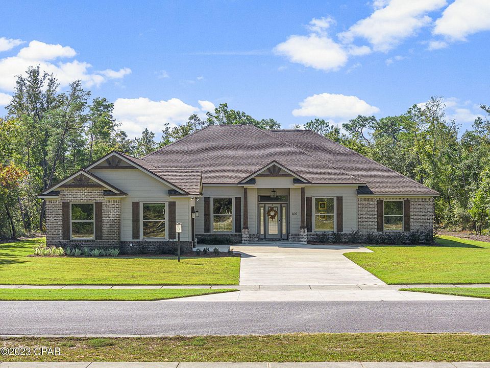 Welcome to 106 Lake Merial Trail, a 4-bedroom, 3-bathroom home that expands almost 2700 sq ft of living area. This beautifully designed custom home has never been lived in (built in 2022) and includes a split floor plan and office area that can also be utilized as a 5th bedroom or playroom for children. 106 Lake Merial Trail embodies lake life, embracing vast woodlands and serenity as you are less than .5 mile to water's edge.