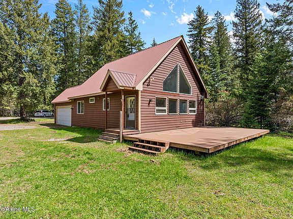 This Cocolalla Estates A-frame home on a half acre is perfect for anyone looking to have their own personal Idaho dream property. 2 bedrooms and 1 bath on the main with a large loft + closet upstairs. Enough space for a bunk room or second family room. A large vaulted great room with propane stove and cadet heating, oversized windows, kitchen with all the amenities and lots of storage make this home the perfect place to get away from it all. 2 decks - one small deck off the back of the home and 1 large deck just steps from the front door looking out to trees and all of the nature the area has to offer, as well as a 2 car garage wrap this up into an opportunity too good to miss. Each parcel includes its own septic system making a shop buildable and a deeded community waterfront lot offers lake access to beautiful Lake Cocolalla. No HOA or CC&R's & close-in amenities! Take the beautiful drive to come see this property today!