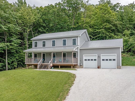 Lovely colonial in Monkton perched on a great lot overlooking seasonal views of Cedar Lake. Enjoy your morning coffee on the delightfully oversized covered porch. You can spend hours out there without even realizing it. The kitchen has plenty of storage and prep area. It's made for entertaining with counter seating and open dining area. The living room offers a cozy fireplace for heat or ambiance. Out on the back porch, enjoy the new saltwater hot tub with no bugs as it is screened-in. Climb the wide stairs to the 3 bedrooms, all of great size. Two share a full bathroom and the primary has an en suite. Ceiling fans, soft paint tones, and beautiful carpet make the sleeping quarters calm and peaceful. The basement is plumbed for a 4th bathroom, insulated, and has two large egress windows, expansion is set and ready to go. Large two-car garage with extra storage available. This home is 30 minutes to Burlington and 30 minutes to Middlebury.