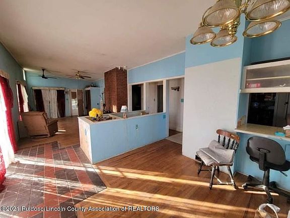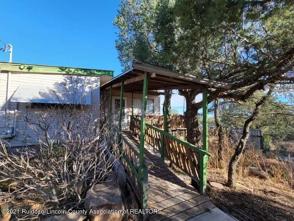Great views of The Capitans, Sierra Blanca, and surrounding woods and mountains on this fully fenced and nicely landscaped acreage. Ramped and easy entry to main level of home, with additional spaces down stairs. The home has a large rain catchment cistern, newer furnace, 2 pellet stoves, a kitchen of appliances, and a lift on the stairs to the lower level. Lots of wonderful potential!