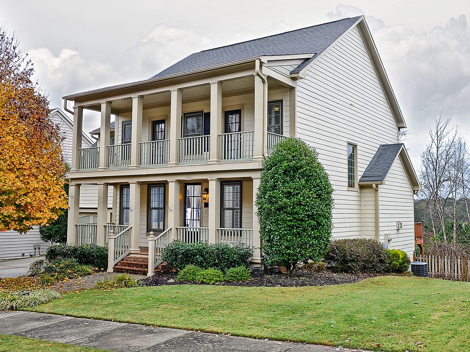 Stately 2-story John Wieland home in sought-after River Green! Large, dbl covered front porch. Main level features hardwood floors, powder room, fireside family room and gourmet kitchen. Spacious owner's suite w/office area or 3rd walk-in closet, double vanity, separate shower and jetted whirlpool tub. Finished terrace level features an additional bedroom, full bath, media room and gym. Relax on your private rear deck overlooking professionally landscaped, fenced back yard with amazing views! Resort style amenities surrounded by open space and Etowah River.