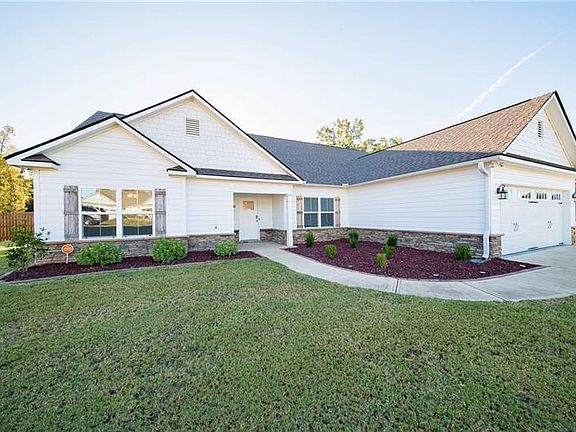 Immaculate 1 story home in Lee County. Just 2 years old. Open Split Floor plan offers luxury vinyl plank floors in main living, kitchen and dining. Carpet in the bedrooms. Spacious Family room with electric fireplace is open to eat-in Kitchen with raised breakfast bar, granite counter tops, subway tile backsplash, stainless steel electric appliances & pantry closet. Access to covered back porch with fan. Master Suite has quartz double vanity, soaking tub, tile shower and walk-in closet. Three additional bedrooms on opposite side of the home with double vanity hall bath. Laundry Room and Mud Space just inside Garage entry. 2 Car Garage. Security. Home sits on 1.61 acre lot with tons of potential. Fenced in backyard. Cul-de-sac location. Zoned for Smith Station West / Wacoochee Elementary, Wacoochee Junior, SS Intermediate and SS High Schools. Practically brand new with two year benefit of fencing and shed.