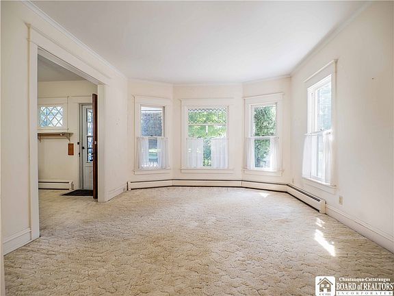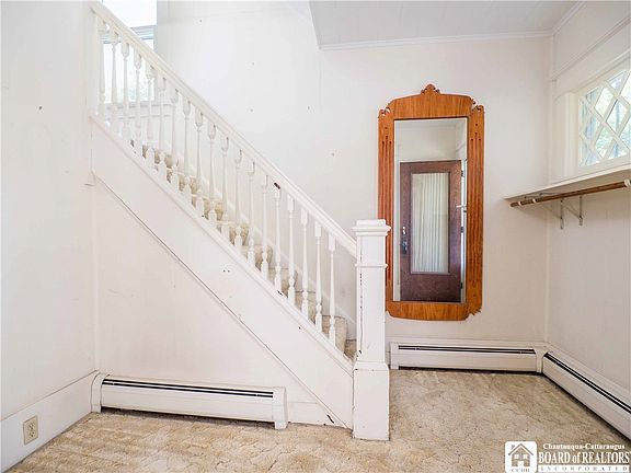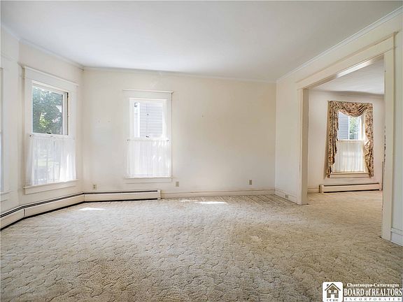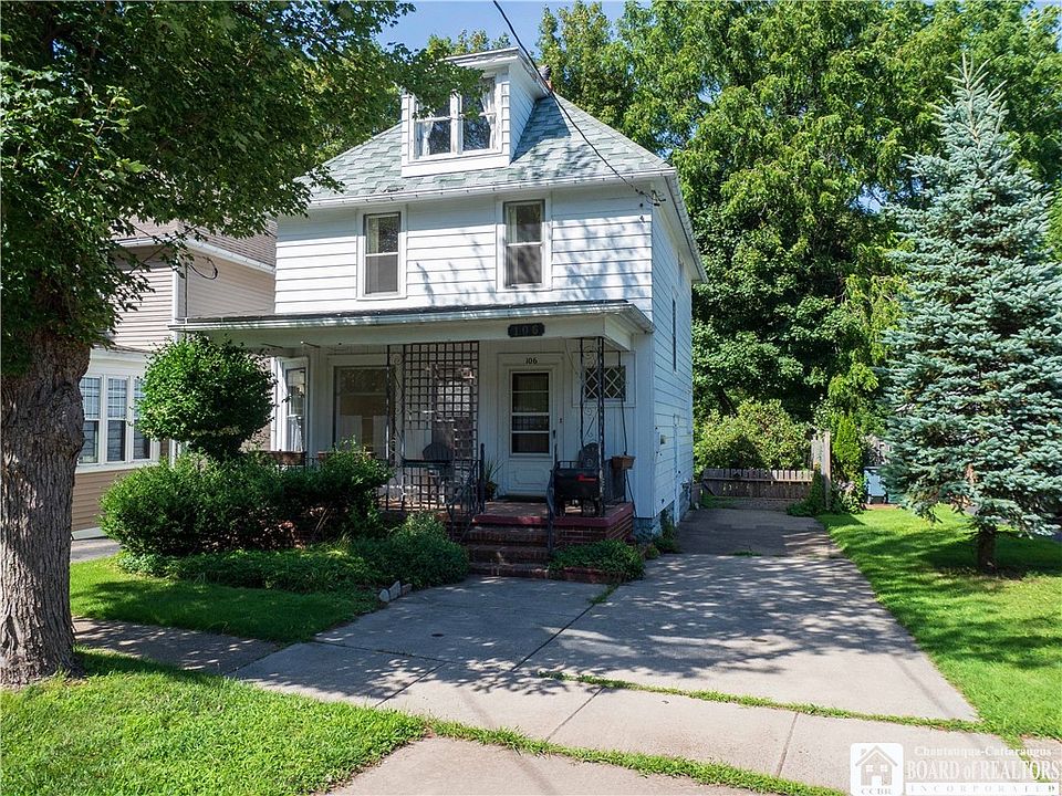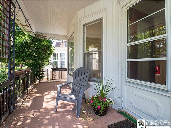 This charming 4-bedroom/2-bath home is move-in ready and waiting for its new owners! First floor features a country kitchen, dining/living room combo w/built-in shelving, primary bedroom, full bath, and laundry area. The foyer staircase leads to the second floor where you will find 3 additional bedrooms, full bath and walk-up attic; plenty of closets and storage space throughout. Full, dry basement w/workshop, covered front porch, rear deck, and nice backyard with beautiful views of Canadaway Creek! Convenient location! Appliances included. Update 8/15/23 - Offers due by Wednesday, August 16, 2023 at 6:00 pm.