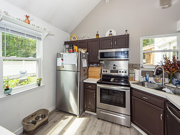 Very attractive home in Sangaree NO HOA. The master bedroom suite is on first floor with spa inspired bath and private sitting area. High vaulted ceilings, wood burning fireplace, laminate floors. Kitchen includes an open bar area with decorative tiled counter and backsplash. Two bedrooms upstairs with a full bath. Patio, deck, vinyl privacy fencing, and a storage building are all a part of this great home. New AC. Neighborhood park is outside the cul-de-sac and this home is in walking distance to Berkeley County Library and Sangaree schools. This home is a must see and must own!!