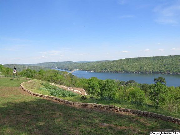 Million dollar view of Lake Guntersville at less than half that price. Full custom brick, 4 bedroom, 2 bath home nestled on 3 acres offers easy commute from Huntsville & Guntersville. Features hardwood & tile floors throughout; eat-in kitchen w/granite counter tops, custom cabinets, a double oven & separate dining room; a great room with lots of natural light & floor to ceiling brick hearth fireplace; master suite w/glamour bath including double vanity, a whirlpool tub & separate shower; spacious guest bedrooms & guest bath w/double vanity; a professionally landscaped lawn & large deck w/awesome view from sun porch & sunroom. 3 car garage w/10x20 workroom & stairway access to attic storage.