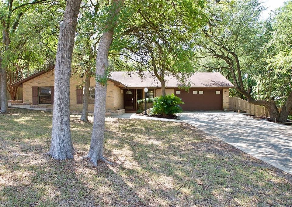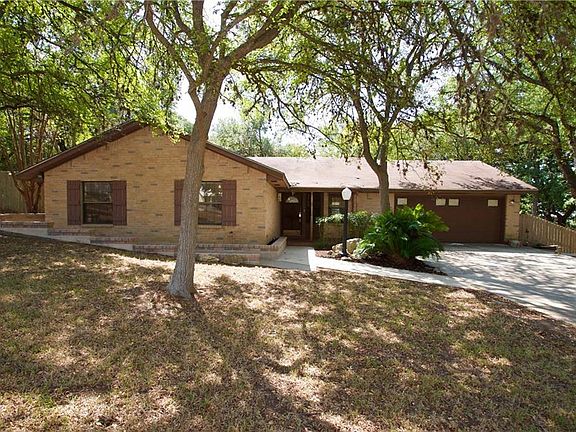 Fantastic location in established, quiet neighborhood close to Texas State. This 3/2 is sited on a large cul-de-sac lot nestled under a canopy of mature trees creating a park like setting. Cozy living room has wood burning fireplace, vaulted ceilings & ceiling fan. Extend your living entertaining space by stepping onto the deck through the french doors. Natural light shines through the original atrium window in to the breakfast nook. The front flex room could easily be used as an office or formal dining. Master bedroom has private patio while the en-suite bath includes dual sink vanity, 2 walk-in closets & shower/tub combo that could easily convert to a walk-in shower. Backyard features large deck, terraced garden beds, greenhouse and storage building. Sizable utility/laundry room includes storage and exit doors to the backyard and garage. Built to last,this original 1980's home is ready for your updates!